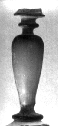 The glasses in this section have much in common with those in group one, so these notes should be read in conjunction with those for that group. The stem shown above on the left is probably a very early example, shown by its thick metal, coarse features and the remains of a high foot. This compares with a mid-century example on the right. Both have an extra collar above the 'cigar' stem. Some early versions of the stem also have pronounced vertical ribbing. There are stems with wrythen moulding on them, which are presumed to be later by comparison with other groups, but there does not appears to be any evidence to substantiate this. Also presumed to be late is the one known example with metal foil inside. Whether this is silver foil or tin foil has not been established. Bowl and foot types appear to be identical to those of section one. The differences in bowls shown in the classifications is just thought to be a matter of chance survival. Unlike the mould-blown stems, which require the glass to be blown very thin, cigar stems could be much more robust and were suited to the new cristalline glasses introduced c 1670. One example has survived made from this kind of glass.