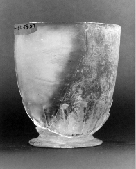 Where do we look for evidence of what might have been produced? The only place is in excavations in "the Islands and Continent of America". The remains of a footed beaker shown below is one such potential candidate. It was found in an 1692 "earthquake" context at Port Royal, Jamaica. I am grateful to: Texas A&M University (TAMU), the Institute of Nautical Archaeology (INA) and the Jamaica National Heritage Trust (JNHT) for the opportunity to examine this find and to illustrate it here. Many of the finds from this site are almost certainly English in origin, but this particular glass is probably not for two reasons. Firstly, there is little evidence that glasses of this style were made in England in the late seventeenth century. Second, fluorescence analysis of the glass suggests that it is made from lead/soda glass, compared with the English norm of lead/potash glass. Despite making a number of enquiries, I have found no pointers towards a European site that was making lead/soda glass. This kind of mixture would only make economic sense for a coal-fired glass house situated near a sea coast or major salt-water inlet (as in Philadelphia). The soda in the glass would then have been derived then from kelp, made from dried sea-weed. Wood-fired furnaces used the wood ash as the major source of alkali, but this contains a high percentage of potash. An additional point is that the glass shown here has a number of features that would go on to be common elements in the eighteenth-century American glass-designers' repertoire.